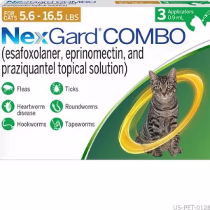 NexGard COMBO Topical for Cats, 5.6-16.5 lbs. (Yellow Box), 3 Doses (3-mos. supply)