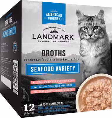 American Journey Landmark Broths Seafood Variety Pack Wet Cat Food Complement Pouches, 1.4-oz case of 12