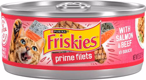 Friskies Prime Filets with Salmon & Beef in Sauce Canned Cat Food, 5.5-oz, case of 24(Salmon & Beef)