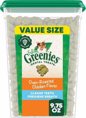 Greenies Feline Oven Roasted Chicken Flavor Adult Natural Dental Cat Treats, 9.75-oz tub