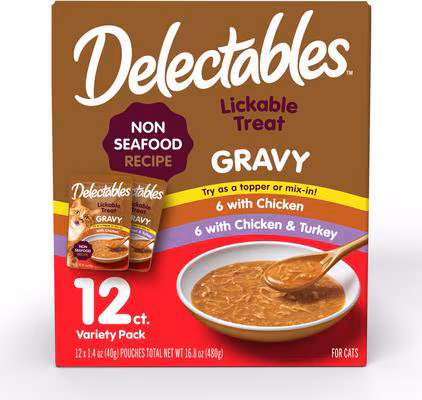 Hartz Delectables Lickable Treat Gravy Non Seafood Variety Pack Lickable Cat Treats, 1.4-oz pouches, 12 count