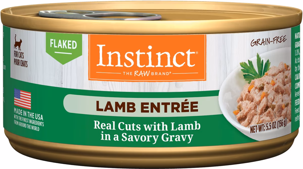 - This Instinct wet cat food recipe features flaked cuts of lamb in a savory gravy to support healthy hydration.