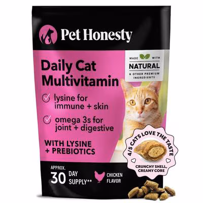 Pet Honesty Dual Texture Chicken Flavored Multivitamin Omega-3 & Lysine Chews for Cats, 3.7-oz pouch