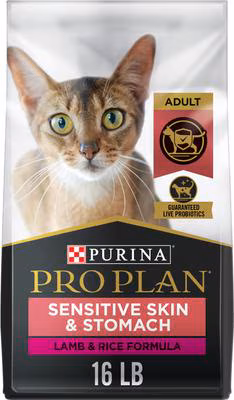 Purina Pro Plan Adult Sensitive Skin & Stomach Lamb & Rice Formula Dry Cat Food, 16-lb bag(Lamb & Rice)