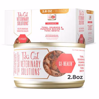 Tiki Cat Veterinary Solutions GI-Health Tuna, Seabass & Pumpkin Recipe Flaked Wet Cat Food, 2.8-oz can, case of 18( Flaked)